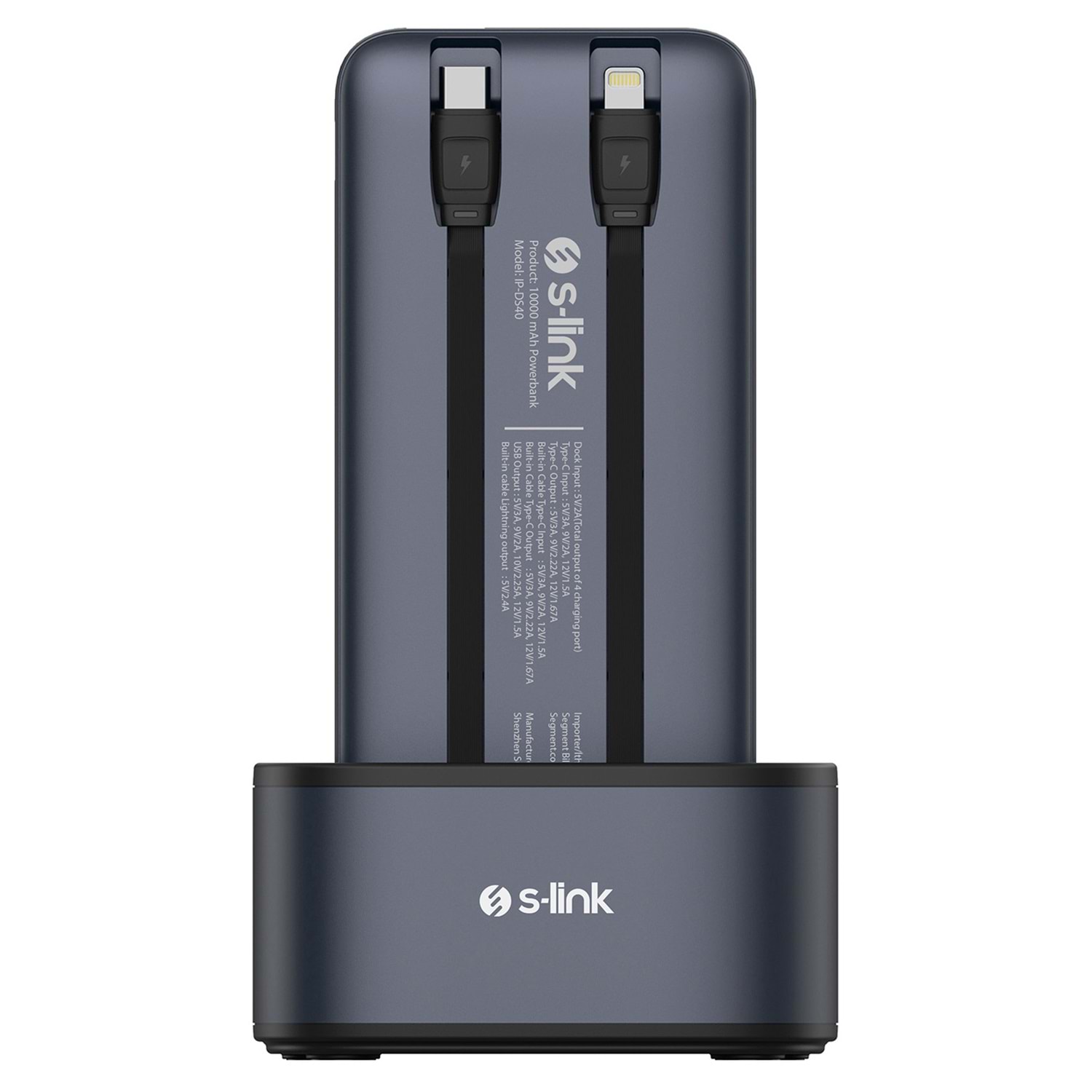 S-link IP-DS40 4 Adet 10000mAH Powerbank li Dahili Kablolu 15W Kablosuz Şarj Siyah Taşınabilir Şarj İstasyonu